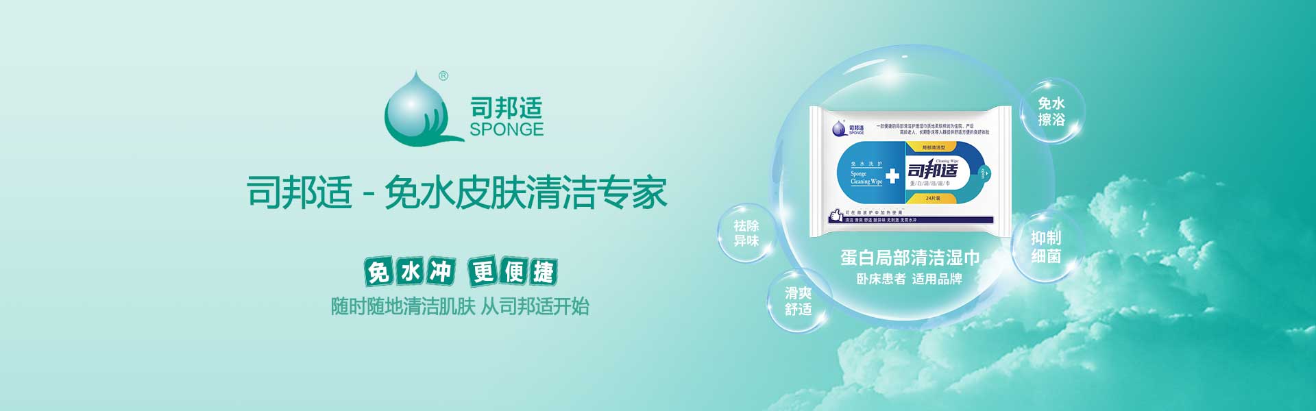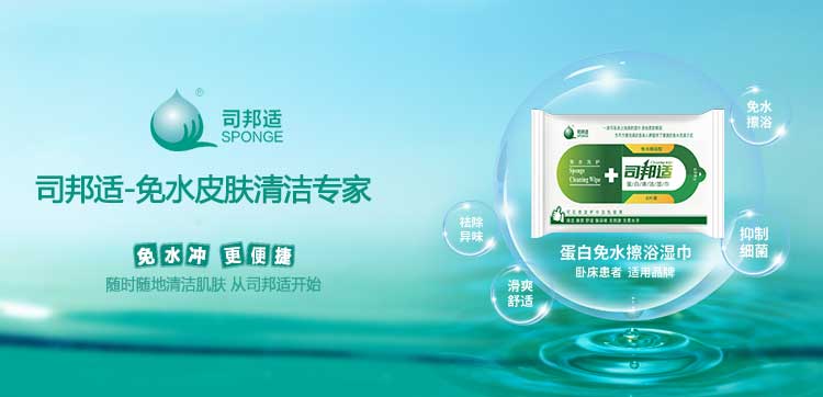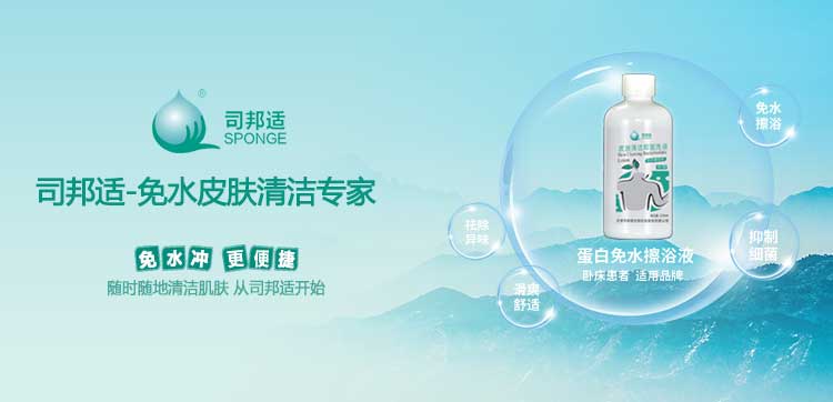 ? ? ? ?本公司研發(fā)的司邦適蛋白表面活性因子,不僅對(duì)人體皮膚及粘膜沒(méi)有刺激,同時(shí)具有對(duì)皮膚很強(qiáng)的清潔能力;可以祛除人體皮膚上的異味,并且具有較強(qiáng)的抑菌功效。使用后無(wú)需用水沖洗皮膚仍感到舒適爽滑;基于上述原因我們研發(fā)的司邦適免水清潔系列產(chǎn)品。主要適用于各種主觀或者客觀上不方便全身或局部皮膚清潔的人群。